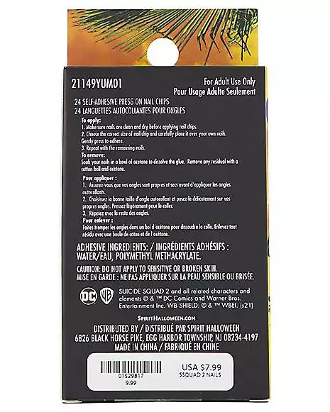 Look like your favorite movie character when you wear these bold red, black and silver official The Suicide Squad Harley Quinn Press On Nails! With various patterns related to Harley Quinn, you’ll have star style in no time.